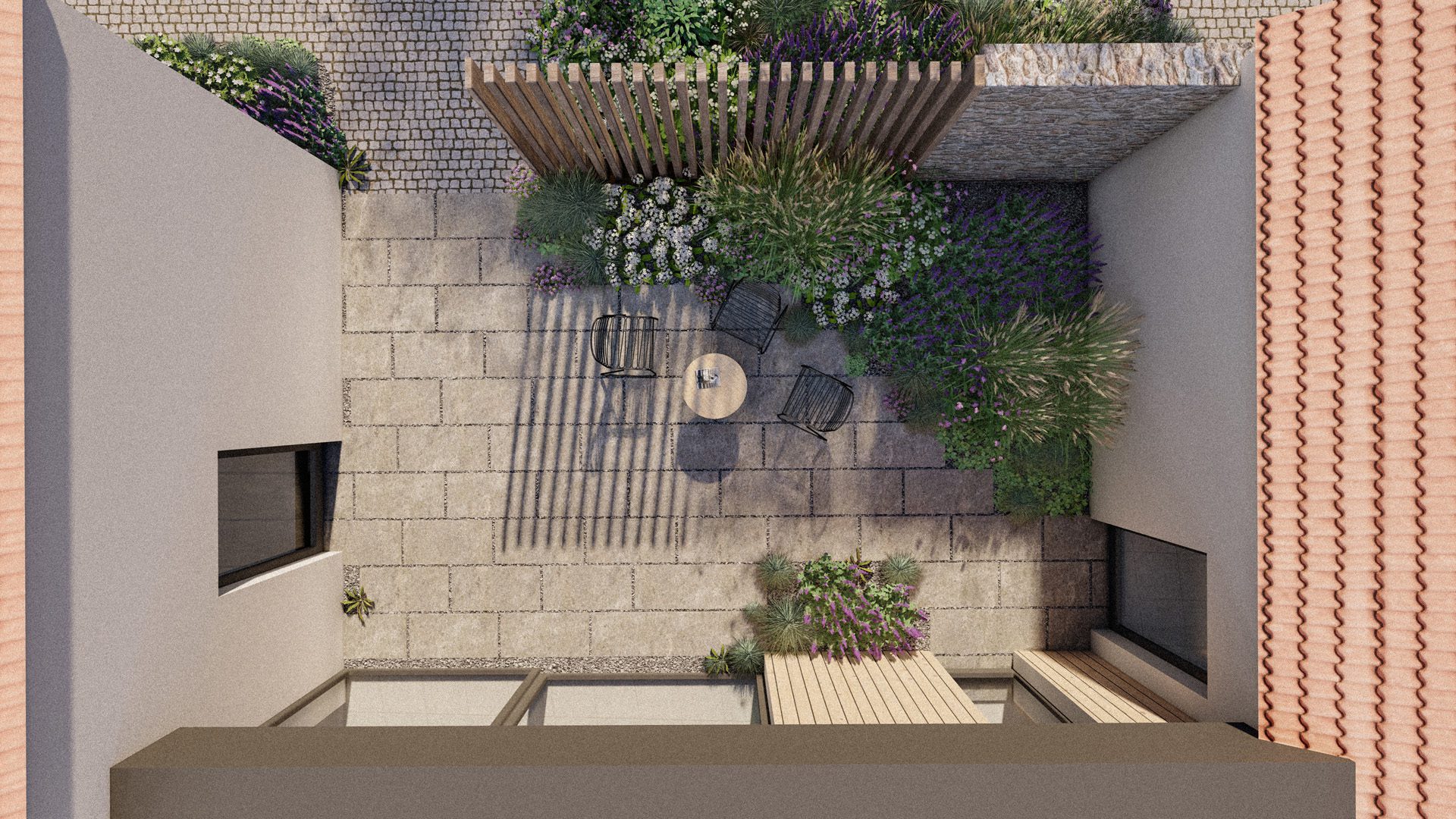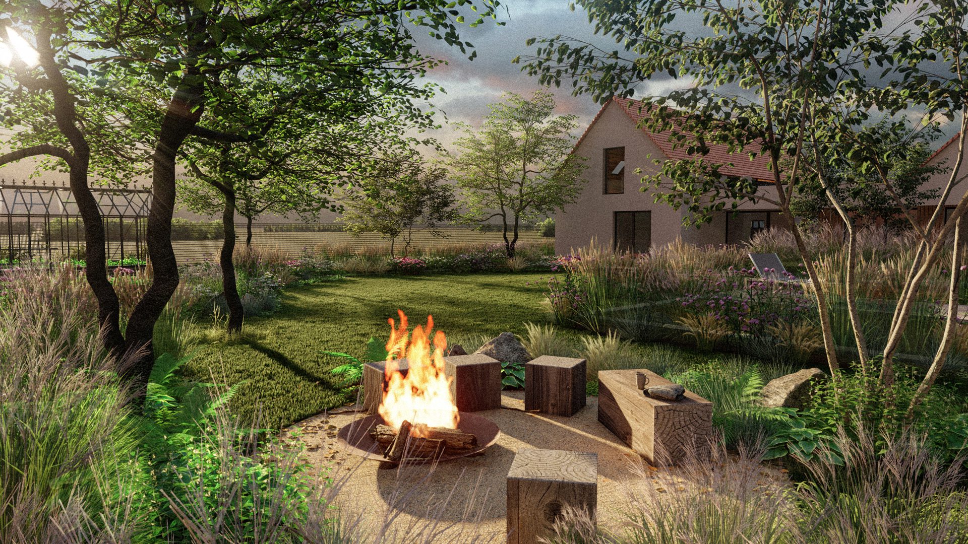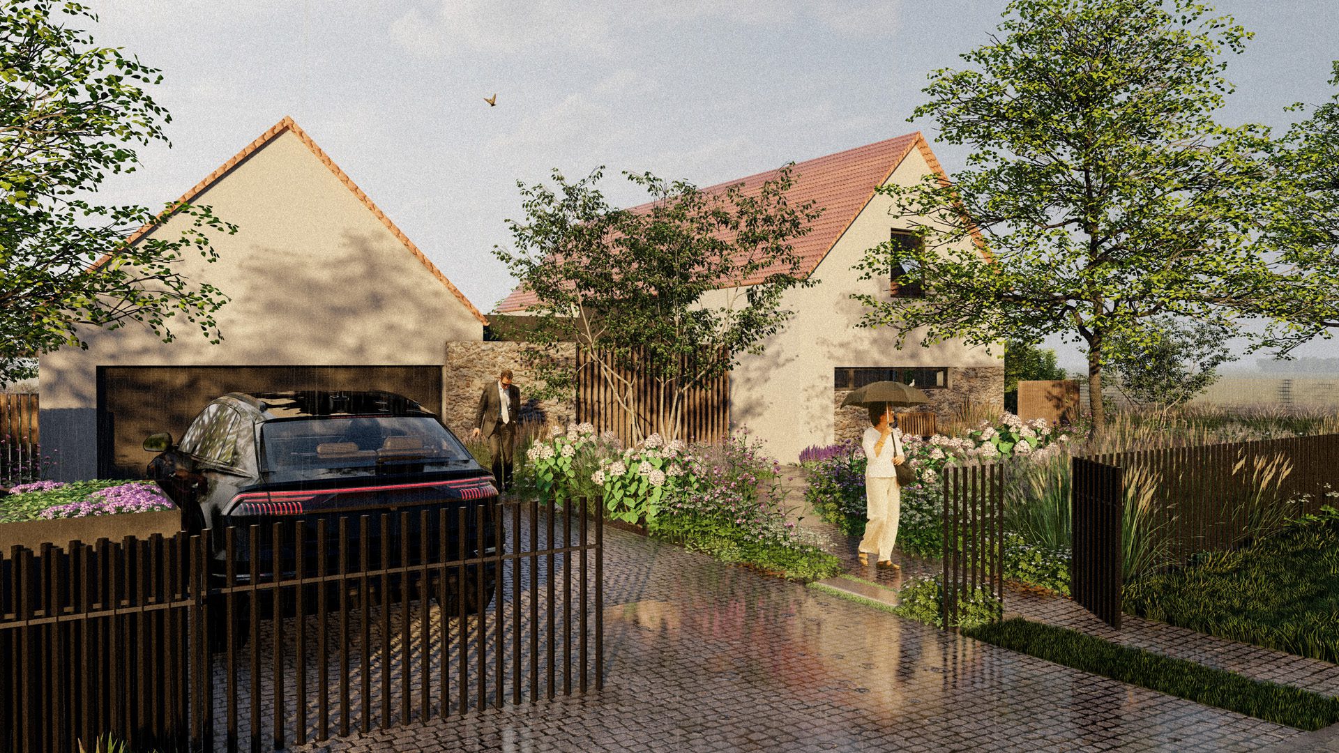 Stejně jako každá správná rodinná zahrada na venkově, má i tato svou užitkovou část – se skleníkem, bylinkovými záhony a ohništěm, které slouží k setkávání i vaření pod širým nebem. Celek doplňují trvalkové záhony, které propojují jednotlivé části a vytvářejí proměnlivý rámec po celý rok. I zdánlivě malé či nevyužité plochy jsme zapojili do kompozice – slouží jako živé kulisy pro pohledy z interiéru, které dávají celé stavbě hloubku a charakter.