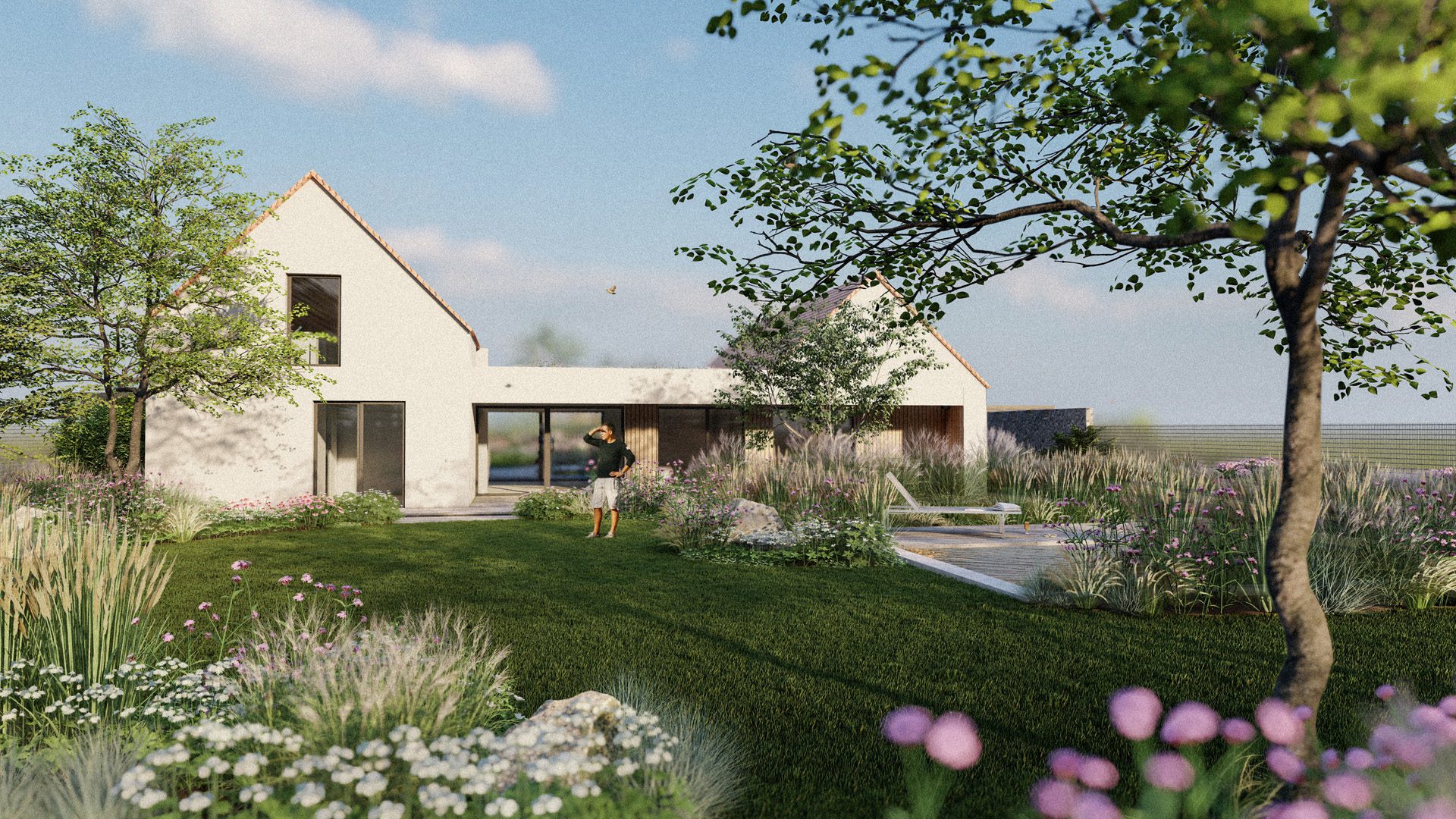 Tato rodinná zahrada spojuje funkčnost s pocitem klidu a soukromí. Nabízí prostor pro odpočinek, hravost i každodenní život v přirozeném kontaktu s přírodou – tak, jak to k venkovskému domu patří.