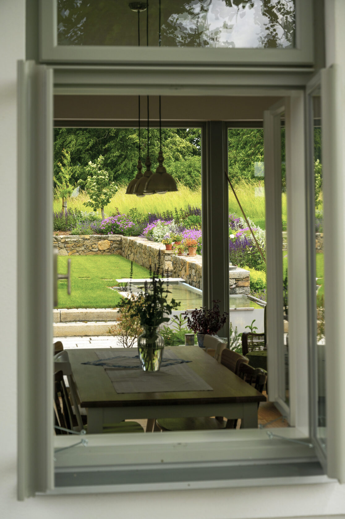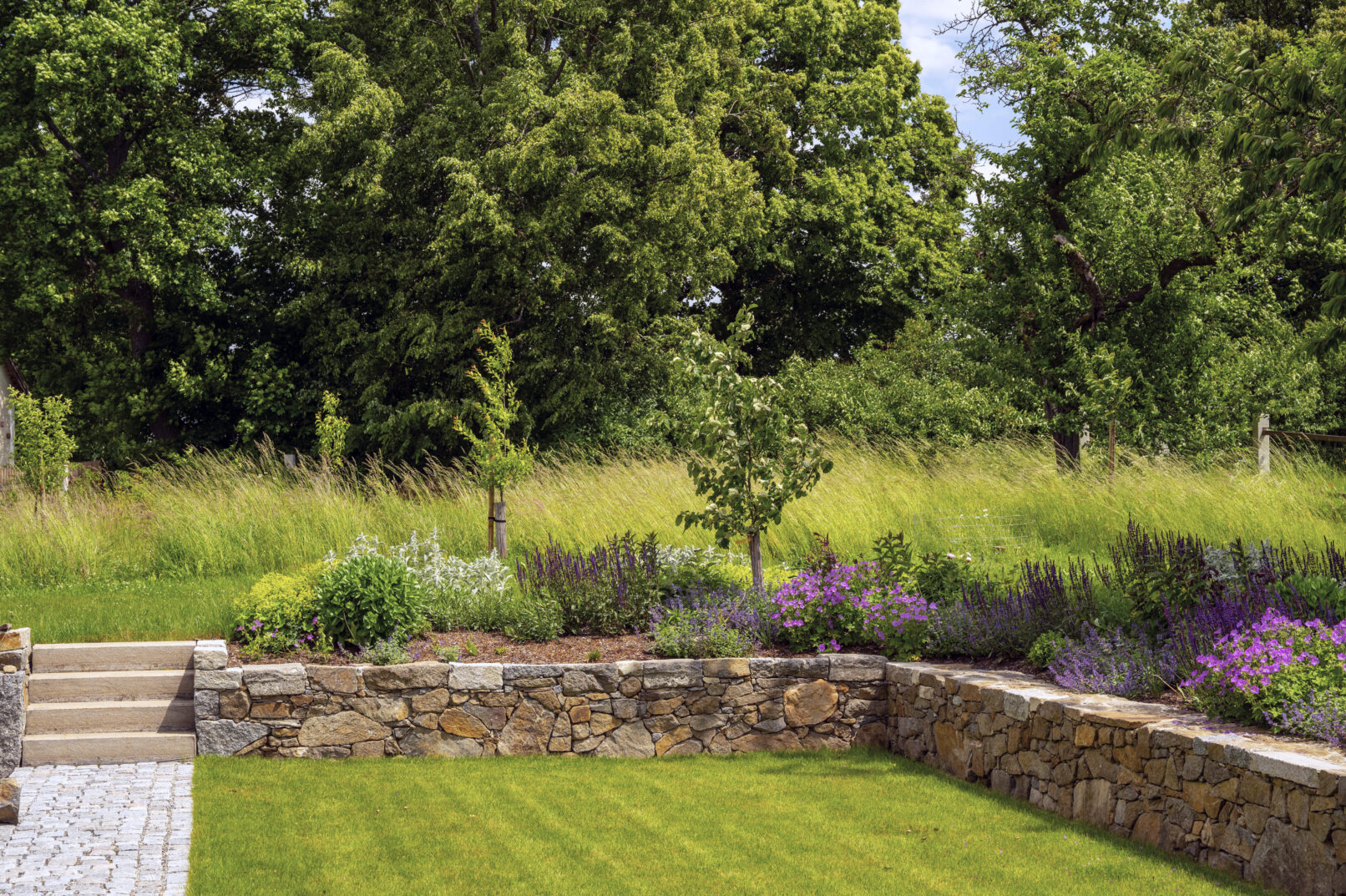 Návrh této zahrady prošel dlouhou cestou. Je to místo, které učaruje každému, kdo jej navštíví. Vstupní dvorek je půvabnou kombinací letitého ořešáku, útulného posezení a starých pískovcových schodů, které nabízejí nádherný výhled do malebné krajiny.
